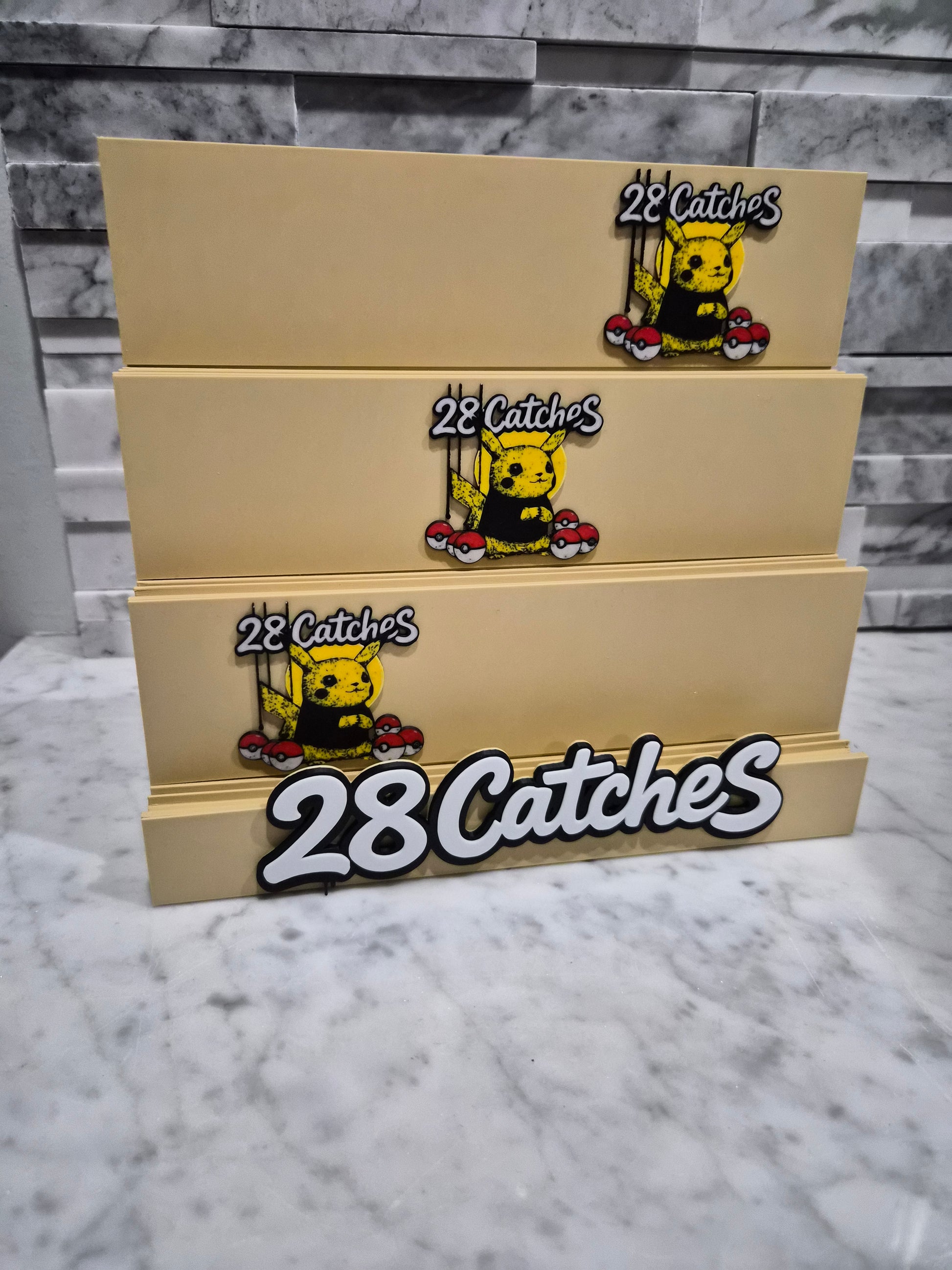 Send us your logo or business name and we will create a custom card stand for your live streams, product photos, rips or card breaks. Our 2 or 3 tier card display stand is printed as 1 piece so its sturdy and no assembly needed. Perfect for sports cards or trading cards like Pokemon, Magic.. etc....